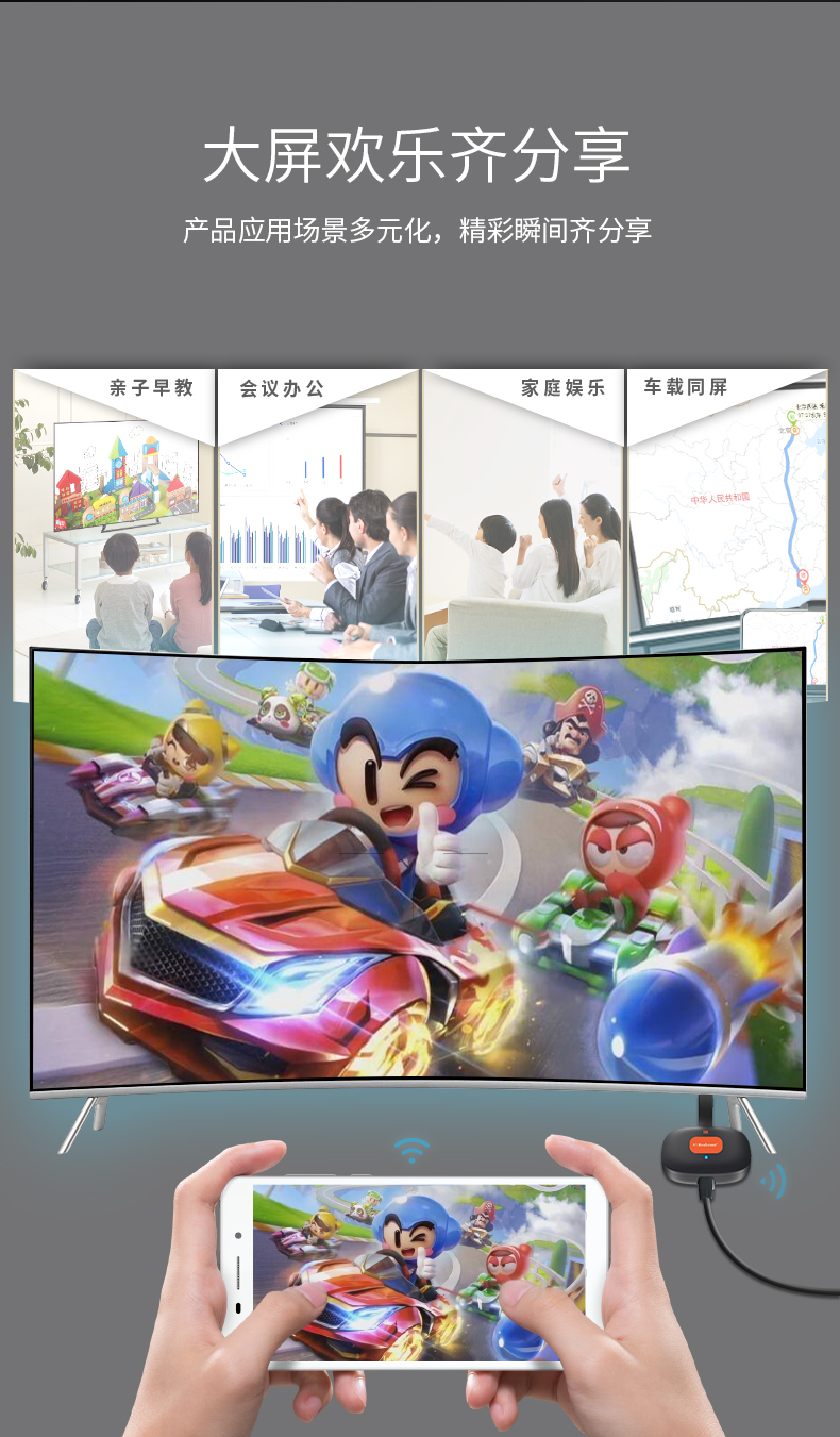 MiraScreen G18 无线同屏器,产品采用内置天线,隐于大屏之后,设计小巧轻薄便携,基本不会占用太大空间,外出旅游或者日常上班都可以随身放包里。